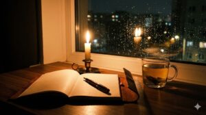 それから、将来の「やりたいことリスト」をノートに書き出すのも欠かせない。次の旅行はどこに行こうかな?どんな動画を撮ろうかな?雨音を聞きながら夢を膨らませていると、外の暗さなんて全く気にならなくなる。むしろ、この静かな時間が、私の夢をじっくり育ててくれる栄養分みたい。未来の自分に期待してワクワクする時間は、どんな美容液よりも私を綺麗にしてくれる気がするんだ!