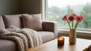 ソファには、ふわっふわのブランケットをスタンバイ。クッションの配置も、一番リラックスできる角度に微調整して。こうして自分だけの「快適空間」を作り上げることって、最高にクリエイティブで楽しいよね!雨の薄暗い光が、お気に入りのインテリアをいつもよりドラマチックに見せてくれるんだ。まるで映画のワンシーンみたいで、私はその主役!そう思うだけで、何気ないお部屋が特別な聖域に変わっちゃうから不思議だよね!