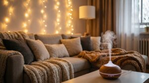 お気に入りのアロマディフューザーからは、大好きなサンダルウッドの香りを漂わせて。視覚、聴覚、嗅覚……全部を「大好き」で満たしていくの。こうして自分のお城を整えることって、自分を大切にすることと同じだよね。外の世界がどれだけ荒れていても、このお部屋の中だけは、世界で一番穏やかでハッピーな場所なんだ!
