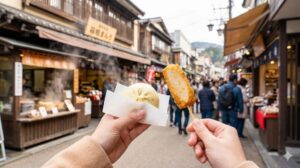 商店街は誘惑の食べ歩きロード!焼きたておまんじゅうと揚げかまぼこに悶絶
