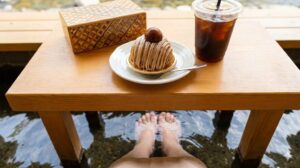 秘密の足湯カフェでひと休み!川のせせらぎを聞きながらスイーツタイム
