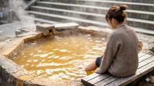 伊香保には「黄金の湯」と「白銀の湯」の2種類があるんだけど、この黄金の湯は、空気に触れると酸化してこの色になるんだって。自然の不思議だよね。 お湯に浸かっていると、なんだか体の芯からポカポカしてきて、日頃の冷え性もどこかへ飛んでいっちゃいそう。 「あぁ、幸せ…」って、思わずため息が出ちゃうくらいの極楽気分。 このお湯には子宝や女性の健康に良いっていう言い伝えもあって、昔からたくさんの女性に愛されてきたんだって。 私も黄金のパワーをたっぷりチャージして、肌がツルツルになっていくのを感じて、なんだか自分自身が一段階アップデートされた気分になれたよ!