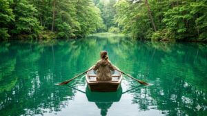 「えっ、嘘でしょ!?この色、加工してないよね?」 って、自分の目を疑うくらいの鮮やかなエメラルドグリーン! 光の当たり方や水の中の成分で、コバルトブルーに見えたり、ターコイズに見えたりするんだって。 まさに「自然が作った宝石箱」。 私はボートを借りて、湖の真ん中まで漕ぎ出してみたよ。 水面がキラキラ反射して、まるで青い光の絨毯の上に浮いているみたい。 「サワサワ」と揺れる木葉の音と、鳥のさえずり。 都会の喧騒を完全に忘れて、私はただただこの神秘的な「青」に包まれて、心が空っぽになるまで癒やされちゃった。 五色沼のパワー、本当に半端ないよ!💎🛶