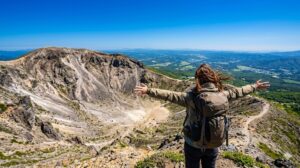 頂上に着いた瞬間、目の前に広がった景色に私は本気で絶叫! 「うわあああ!ここ、日本なの!?それとも火星!?」 直径約500メートルの巨大な火口が目の前にドーンと口を開けていて、周りには植物が一つも生えていない、荒々しい岩の世界。 「お鉢巡り」といって、火口の周りを一周歩けるんだけど、これがもう最高の冒険!